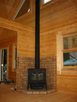 煙突の伸びが、吹抜けの空間をいっそう高く見せます。