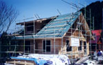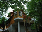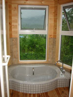 斜面を利用して、地上6mの六角形展望風呂を作りました。