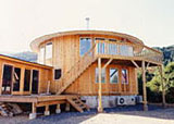 円形2階建てに2x4システムのジャグジールームを付け加えたゆとりの別荘。