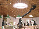 天井の中心にあるのは円形の天窓です。貸切で披露宴やその他のパーティにも利用されています。